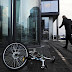 I'm picturing an action scene here. The guy has just heard the news: IceBank (or whatever it's called) has failed, his money is in jeopardy, and he's ridden straight from home to the bank to find out exactly what has happened. Upon arriving, in his hasty frustration, he discards his bike carelessly on the front steps and marches to the front door to take care of business!